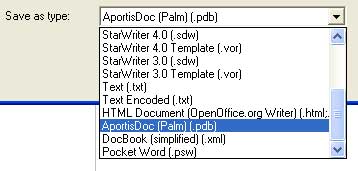 OpenOffice.org allows users to export OpenOffice.org documents to popular file formats like DocBook or various small device file formats like AportisDoc. This gives users the possibility to carry their documents with them on their Palm Pilots and Pocket PC PDA's.