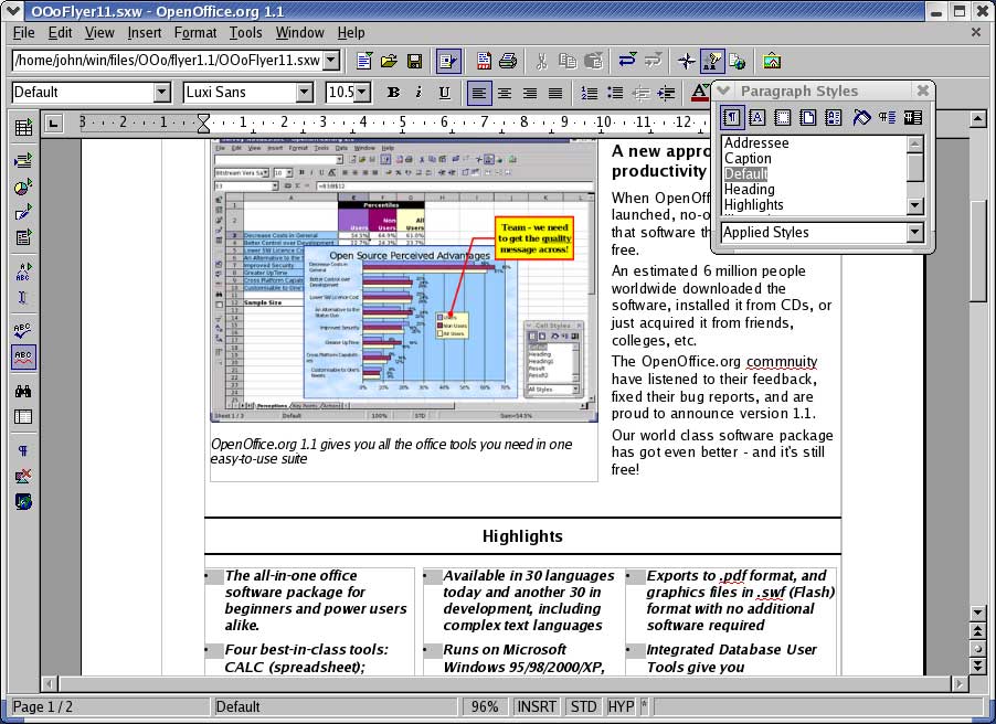 OpenOffice.org 1.1 - word processor, spreadsheet application, presentation tool and more